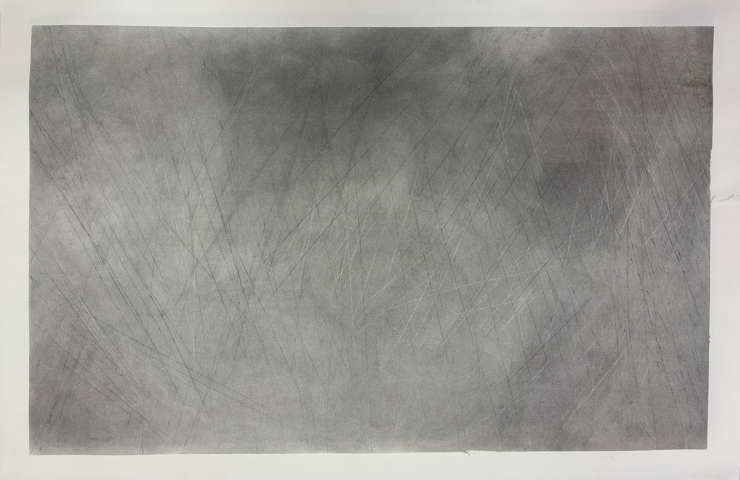 These drawings were made in the studio, imagined as a kind of echo of Plato’s cave, where what we sense is only part of a larger reality. The subtle influences of sunlight and sound are translated into marks that hint at something just beyond reach. In this sense, the work connects to Madden’s theory of a reality that exists beyond what we can fully perceive. The drawings remain open and unresolved, offering a contemplative surface to reflect on what cannot be seen or known.